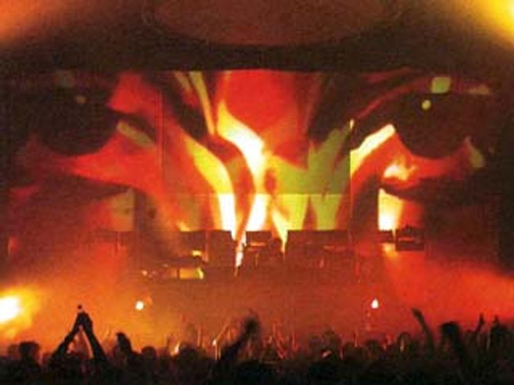 Underworld Rock Band Concert Featuring Media Technologies Brick-1 Video Wall Processor Configured in a Pyramid